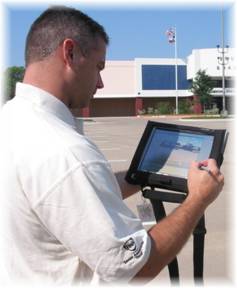 approaches. When the appraiser returns to the office, the pen-based tablet is